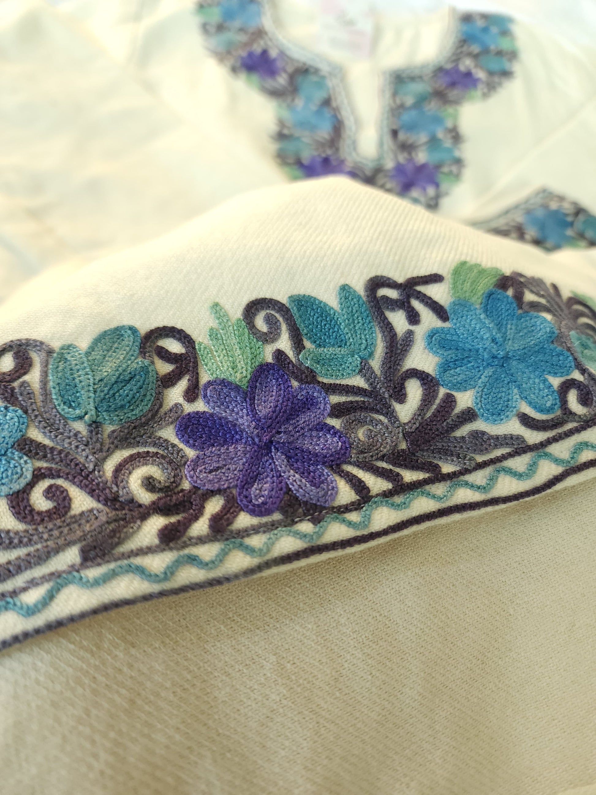 Experience the elegance of Kashmir with this exquisite Cashmillon Designer Kurti. Handcrafted with intricate embroidery, it's a timeless piece that radiates grace